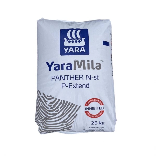 Το YaraMila® PANTHER N-st P-extended είναι ένα πυκνό prilled σύνθετο παρεμποδισμένο - σταθεροποιημένο λίπασμα με ΑΝΑΣΤΟΛΕΑ ΝΙΤΡΟΠΟΙΗΣΗΣ DMPP, το οποίο εφαρμόζεται με ακρίβεια με το χέρι ή χορηγείται με ακρίβεια (έως 24 μέτρα) μέσω λιπασματοδιανομέα.